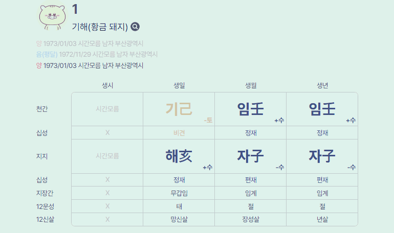 월주/연주: 임자(壬子)년, 임자(壬子)월